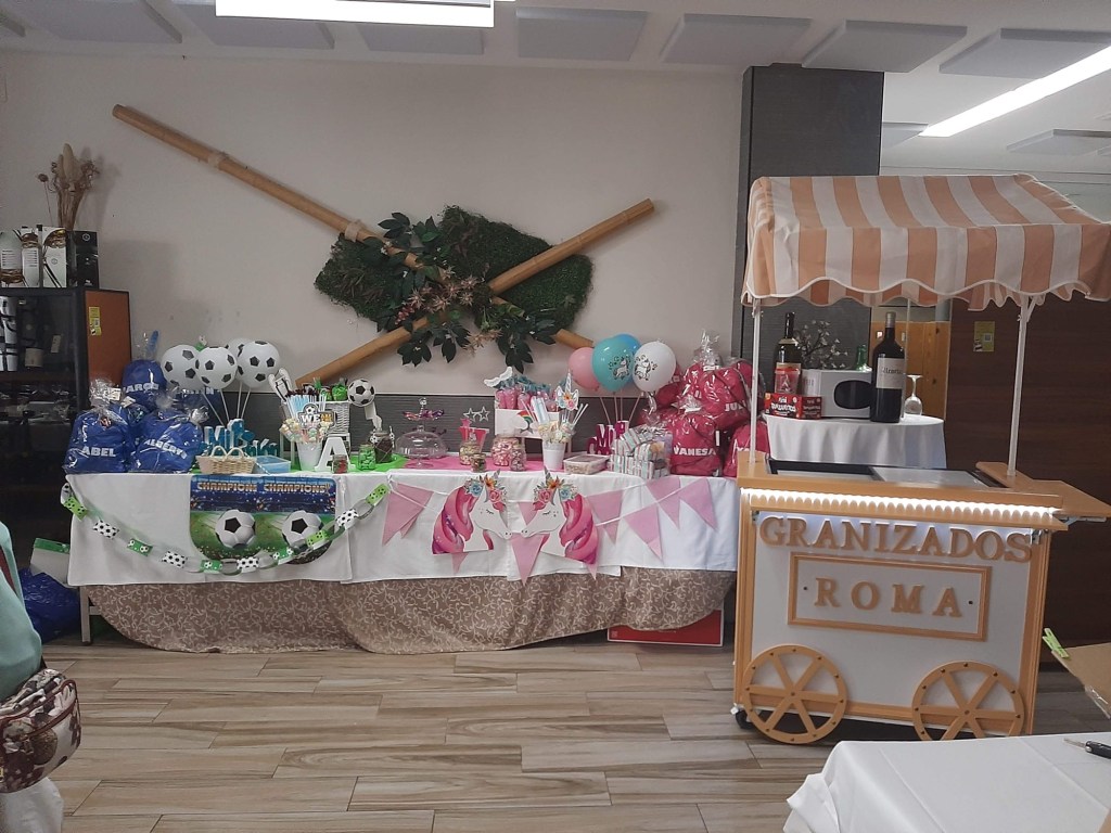 Distribuimos nuestros granizados tanto en nuestro establecimiento como a bares, restaurantes, cafeterías, confiterías y quioscos. Además, ofrecemos servicio para eventos y celebraciones —bodas, comuniones, ferias y fiestas locales— con la posibilidad de desplazamiento mediante carrito de granizados.